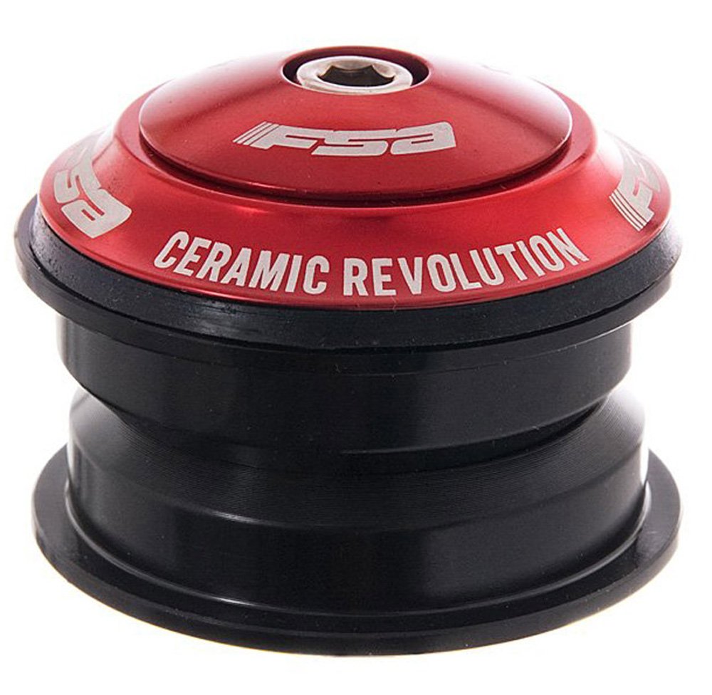 Features FSA Ceramic cartridge bearings with smoother, lighter balls . Zero Stack threadless headset fits frames with 44.0mm head tube. Aluminum deep-cups, stainless micro angular contact cartridge bearings. Aluminum bearing cap. 30.0mm crown race.